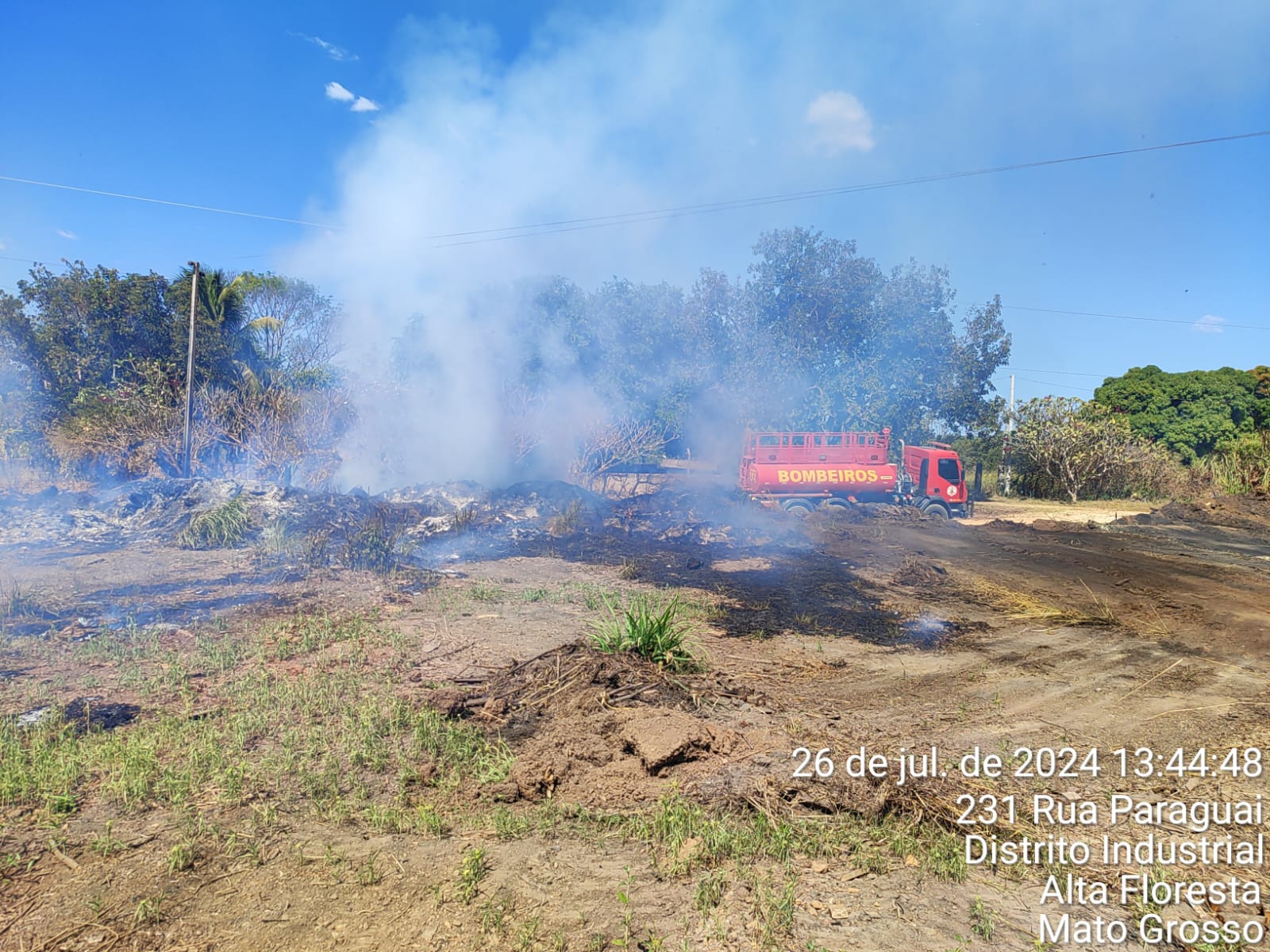 O Corpo de Bombeiros de Alta Floresta foi acionado no início da tarde de ontem, sexta-feira (26), para combater uma queimada em pastagem nas proximidades de madeireiras localizadas na avenida Industrial, setor de chácaras em Alta Floresta.