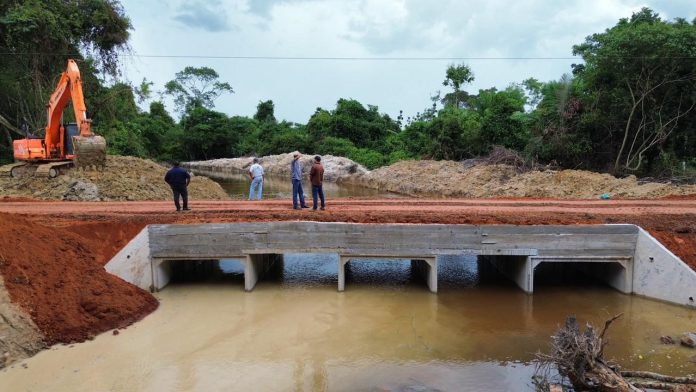 A Prefeitura segue avançando na recuperação da malha viária rural e entregou, nesta semana, uma importante obra na Comunidade Cristalino: a construção de uma galeria de cinco bocas de aduelas com aterro totalmente reestruturado, substituindo uma ponte de madeira que há anos representava risco e dificultava o acesso de moradores, produtores e estudantes.