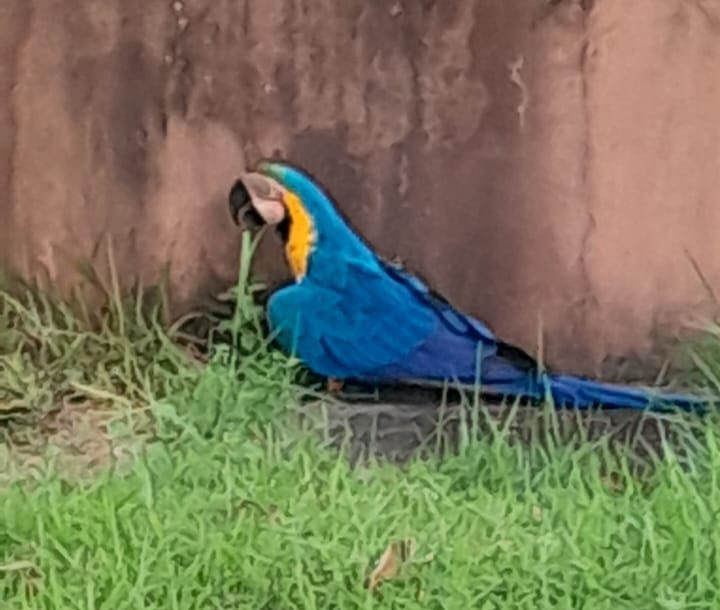 Uma arara-canindé mobilizou a equipe do Corpo de Bombeiros Militar na tarde desta quarta-feira (11), em Alta Floresta. O animal foi localizado por moradores na Rua B4, no Setor B, em uma situação de risco por estar em via pública e sem conseguir levantar voo.