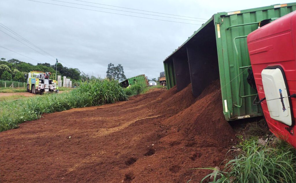 A Concessionária Rota do Oeste e a Polícia Rodoviária Federal foram acionadas às 6h15 para o atendimento de uma ocorrência no km 760 da BR-163, em Sorriso, envolvendo o tombamento de uma carreta Mercedes Benz, 2644, vermelha, sobre a pista.
