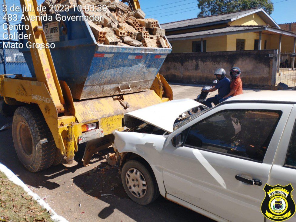 Uma mulher ficou ferida em um acidente ocorrido na manhã desta segunda-feira, em Colíder, na avenida do Colonizador. Ela conduzia um VW Gol e acabou batendo na traseira de um caminhão de entulhos, que seguia no mesmo sentido.