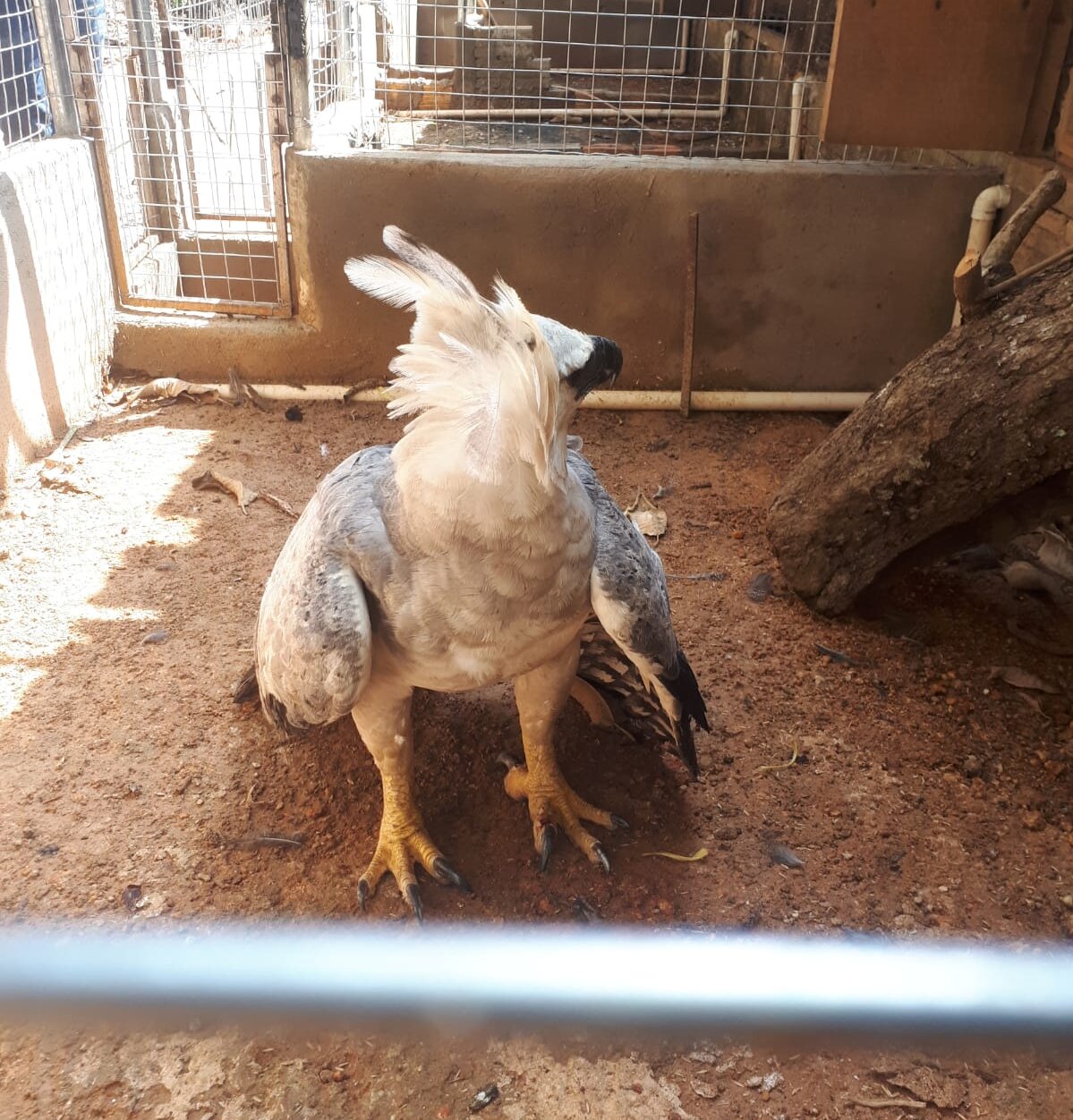 Foi mantida a imobilização e posteriormente a Harpia foi acondicionada em caixa de captura e considerando que a SEMA estava fechada no fim de semana, o animal foi encaminhado à empresa paraíso das aves.