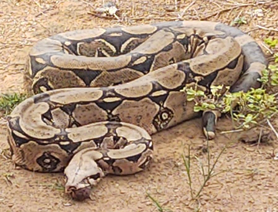 Uma cobra da espécie jiboia (Boa constrictor), com cerca de 1,80 metro de comprimento, mobilizou o Corpo de Bombeiros na tarde desta quarta-feira (8), após ser avistada atravessando uma via no Setor Industrial, em Alta Floresta.