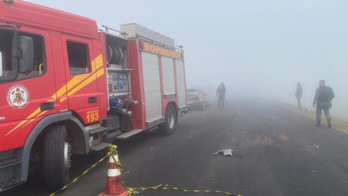 Imediatamente, os bombeiros realizaram a verificação de possíveis vítimas no interior do veículo, enquanto iniciavam o combate direto ao foco de incêndio utilizando o mangotinho.