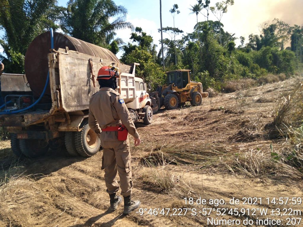 Após determinação da Sala de Situação Descentralizada 7 – SSD7, do Comando Regional de Bombeiros Militar VII, com sede em Alta Floresta, foi realizado o deslocamento de uma equipe dos Bombeiros para uma área de manejo florestal em uma fazenda, localizada na estrada de Apucarana, município de Nova Bandeirantes, com a finalidade de se averiguar conglomerado de focos de calor constatados em monitoramento da Sala de Situação 7.