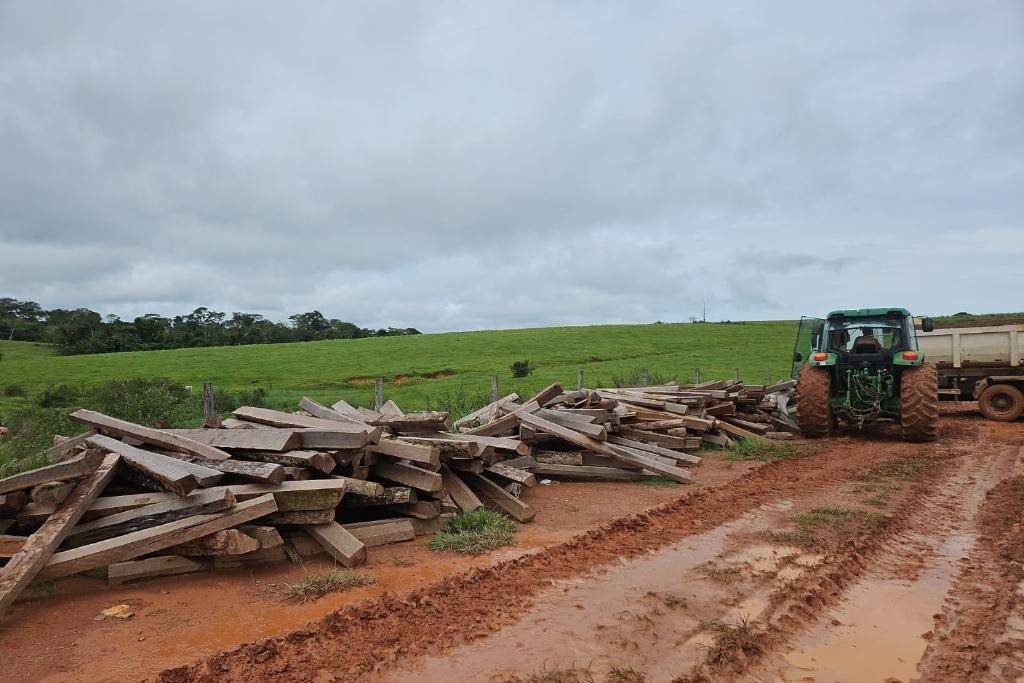 Deste total, 1.045 lascas de itaúba-preta, foram encontradas dentro de um depósito na propriedade e mais 547 unidades empilhadas em montes de lascas na área externa.