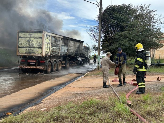 Na tarde deste domingo, 30, um caminhão graneleiro foi completamente consumido pelas chamas às margens da BR-163, no km 756, saída de Sorriso para Sinop.