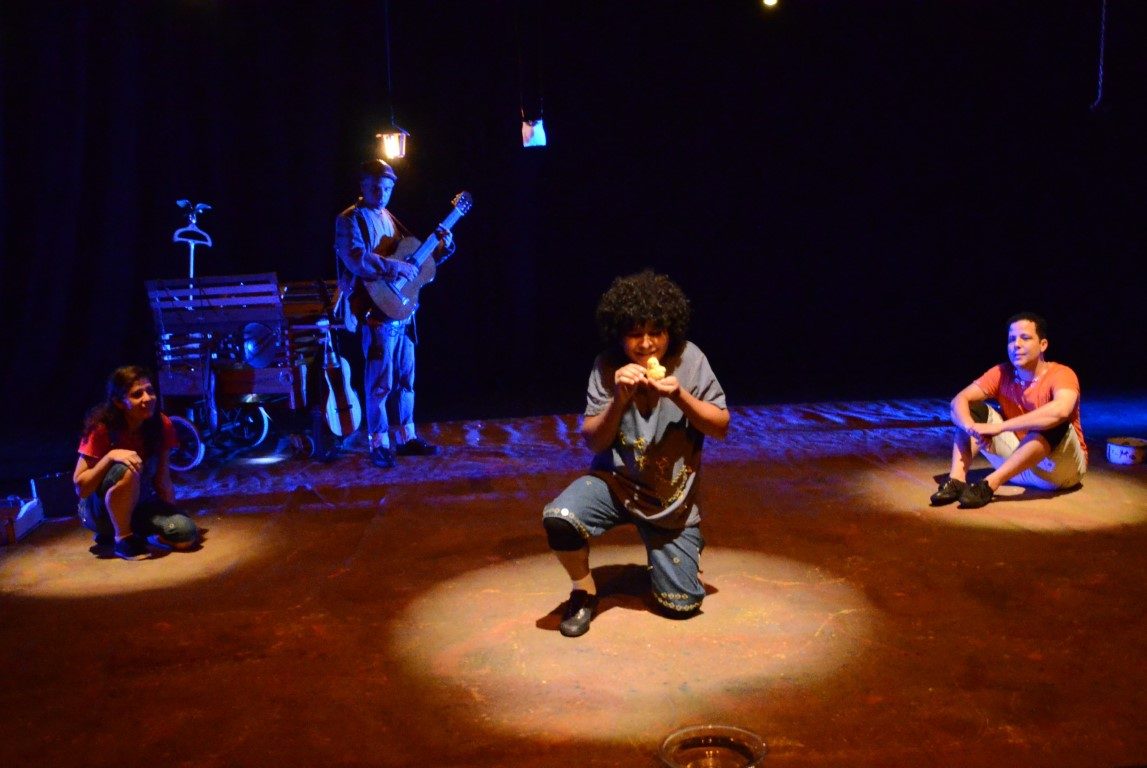 Quanto ao espetáculo, é uma peça livremente “inspirada na obra literária “O menino e o pinto do menino”, de Wander Piroli, que conta a história de Cau, um garoto que troca latas e panelas velhas por um pintinho e tenta a todo custo levá-lo para casa. A dramaturgia costura, ainda, as memórias sobre os afetos, as alegrias e dores dos atores e diretores Brenda Campos, Claudio Marcio, Dário Marques e Keu Freire, que narram, comentam, descrevem e re-apresentam as lembranças sobre seus animais de estimação”.