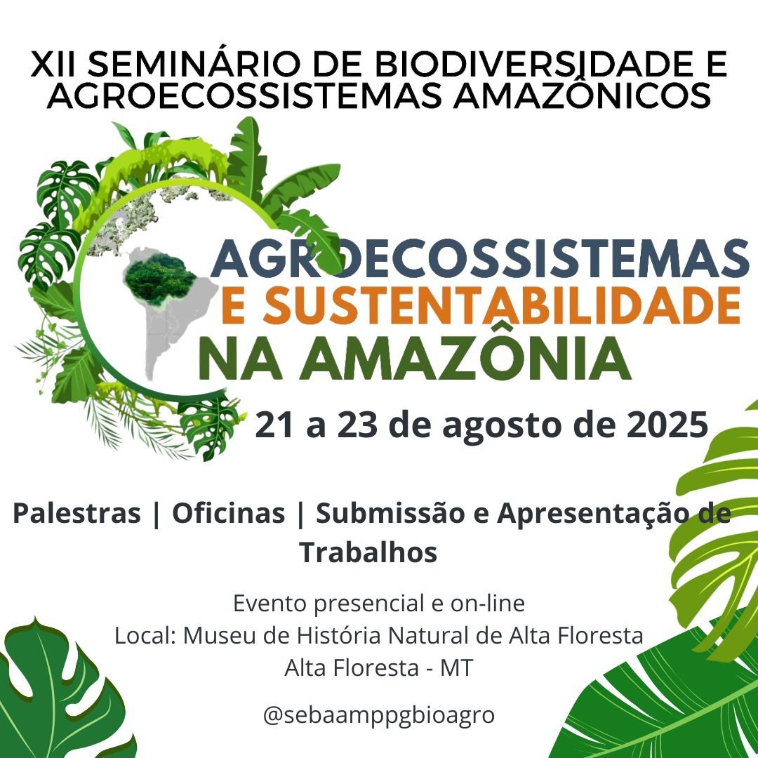 A Universidade do Estado de Mato Grosso (UNEMAT) convida a comunidade acadêmica, pesquisadores, estudantes, produtores e a sociedade em geral para participarem do XII Seminário de Biodiversidade e Agrossistemas Amazônicos (XIISBAA), com o tema: “Agroecossistemas e sustentabilidade na Amazônia”