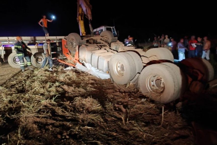 Todos eles estavam no cavalo do veículo de carga, trafegando sentido ao armazém Alvorada, quando a carreta saiu da pista e capotou.