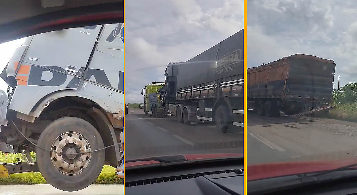 As informações iniciais apontam para uma colisão traseira entre uma carreta DAF cinza e um caminhão DAF 310 verde. O resgate da Nova Rota esteve no local atendendo os envolvidos, mas os dois condutores não se feriram e assinaram o termo de recusa de encaminhamento médico da Concessionária.