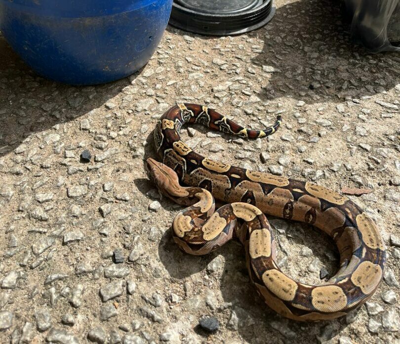 Foi realizada a captura e posteriormente a jiboia foi solta em seu habitat natural.