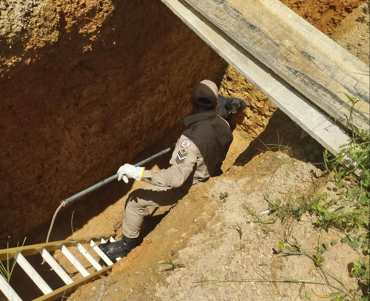 O Corpo de Bombeiros de Alta Floresta realizou ontem, quarta-feira (07), o resgate de um cão que caiu em um buraco de um terreno baldio, no local havia uma obra.