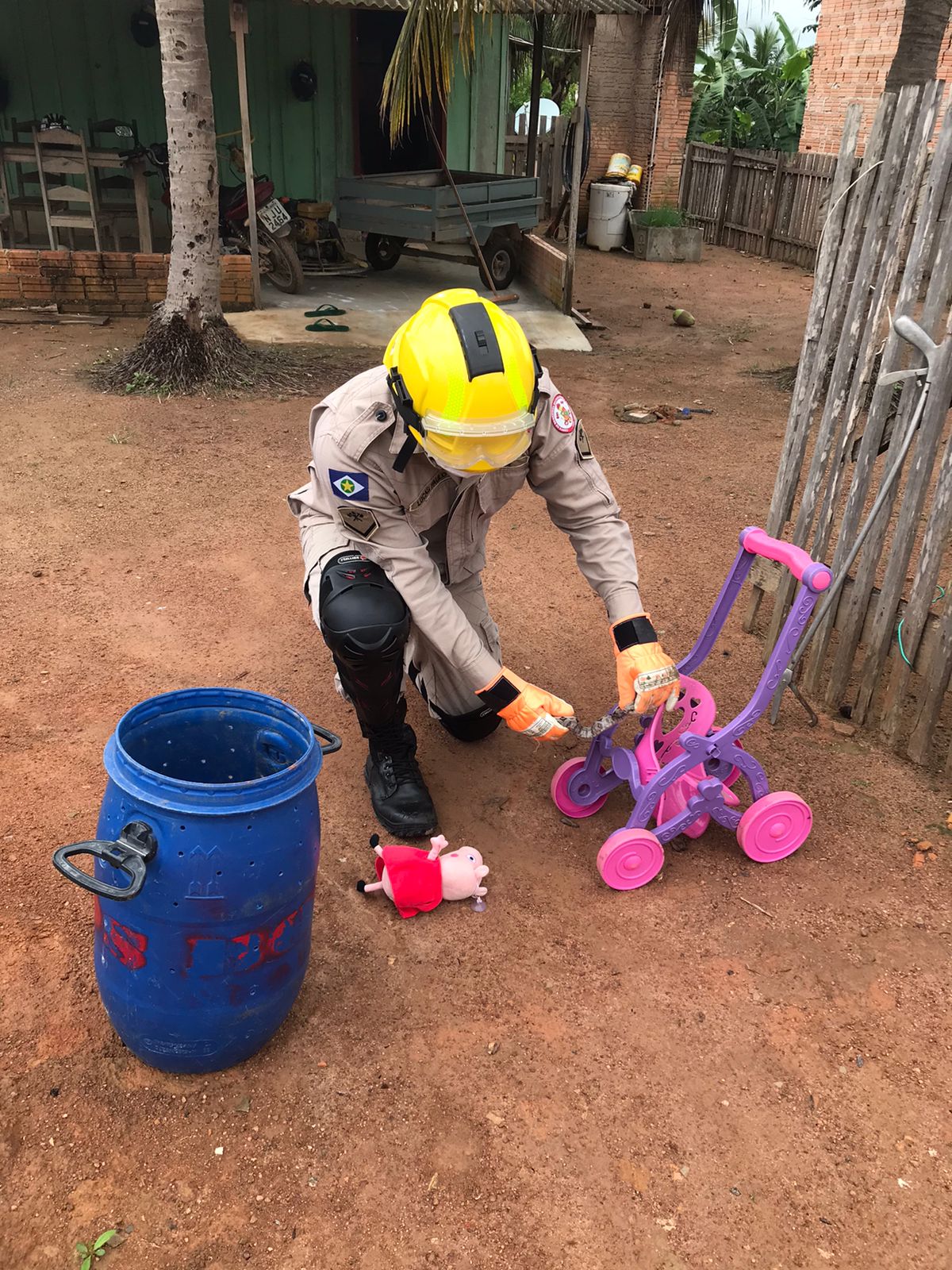 Por volta das 08h40min uma solicitante informou que avistou a serpente no brinquedo de sua filha na área interna do quintal de sua residência.