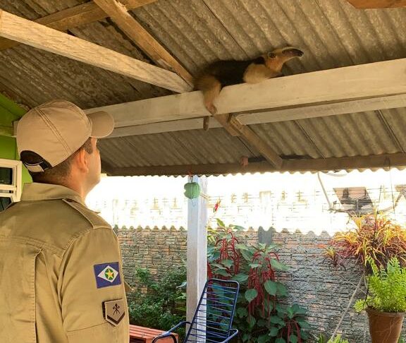 O Corpo de Bombeiros de Alta Floresta foi acionado por volta das 09h15 de ontem, sexta-feira (02), para realizar a captura de um Tamanduá-Mirim em uma residência localizada no bairro Jardim Primavera.