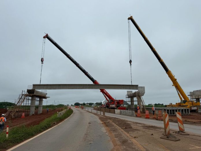 A BR-163 contará com operação de tráfego especial nesta quinta-feira (10/04) e sexta-feira (11/04) para o içamento de vigas necessárias ao alargamento da ponte sobre o Rio dos Patos (km 605) e à construção do viaduto em andamento no km 602, em Nova Mutum. As atividades serão coordenadas pela Nova Rota do Oeste, empresa controlada pelo Governo de Mato Grosso. A medida é imprescindível para garantir a segurança dos motoristas e dos trabalhadores envolvidos na movimentação de equipamentos de grande porte.