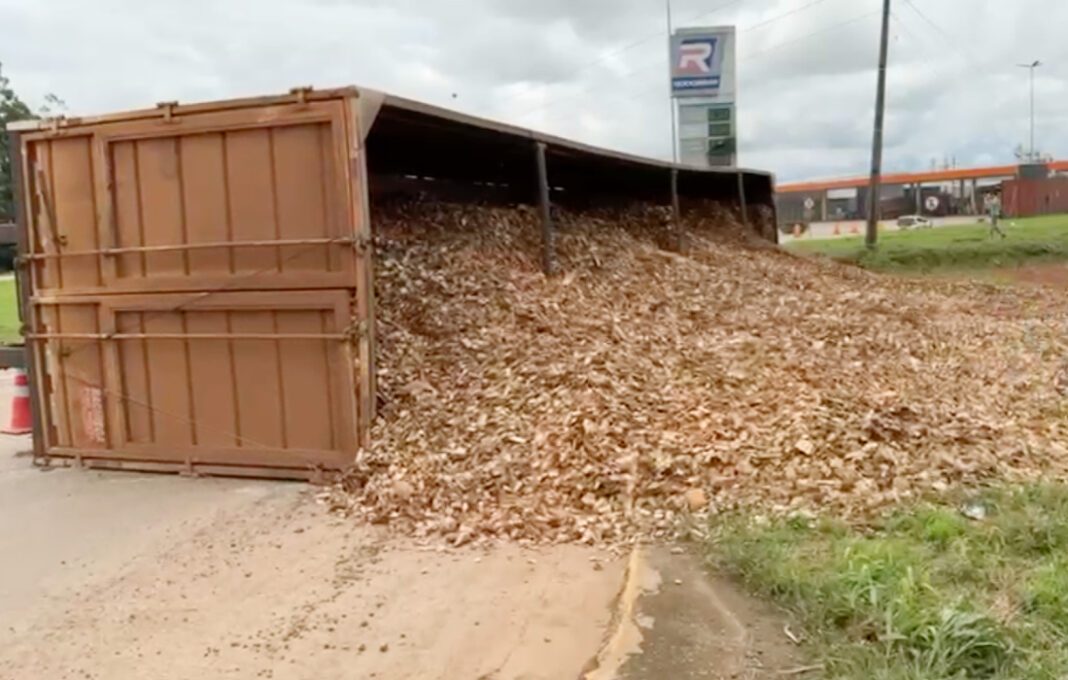 De acordo com informações da concessionária, o chamado foi registrado às 11h27, após uma carreta modelo MB 2651, de cor branca, tombar enquanto trafegava pelo trecho. O veículo transportava carga de cavaco, que acabou se espalhando sobre a pista e também na faixa de domínio, comprometendo o fluxo de veículos.