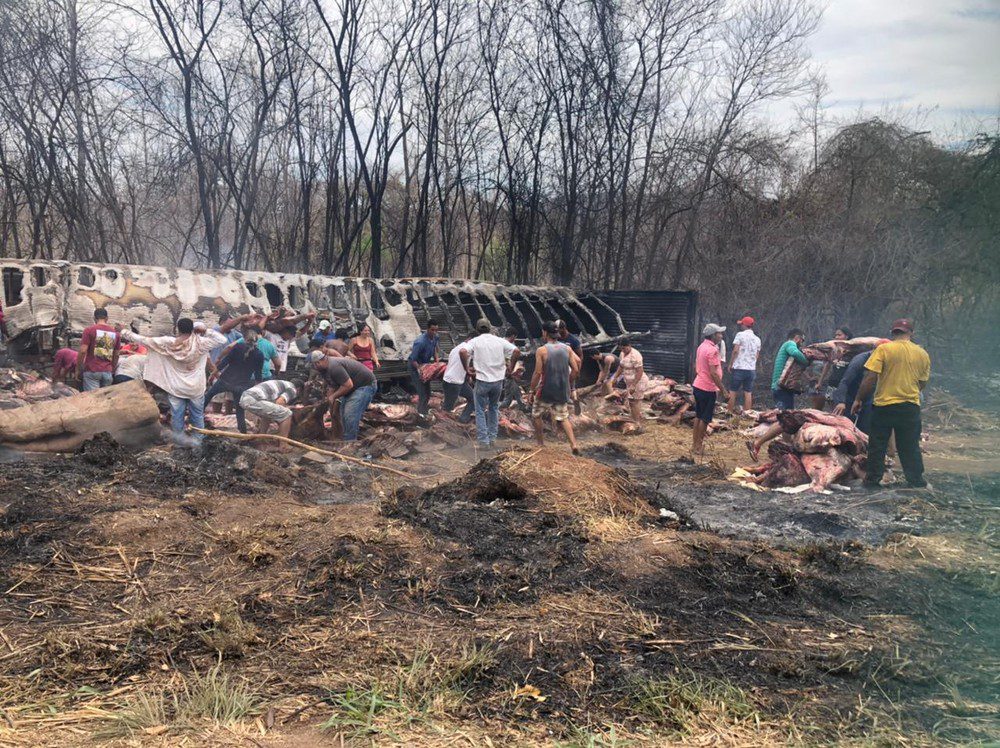De acordo com o Corpo de Bombeiros, o fogo foi controlado, no entanto, após o combate, as pessoas que estavam próximas da região se aproximaram e saquearam a carga de carne.