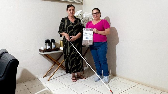 A Primeira-Dama e Secretária de Assistência Social e Cidadania de Alta Floresta, Vilma Gamba, agradeceu à Primeira-Dama do Estado, Virgínea Mendes, ao Deputado Estadual Max Russi e ao Secretário Adjunto de Direitos Humanos da SETASC, Kennedy Dias, pela viabilização e doação de bengalas para cegos, surdo/cegos e pessoas com baixa visão, além de unidades de regletes, utilizados no aprendizado do sistema braile.