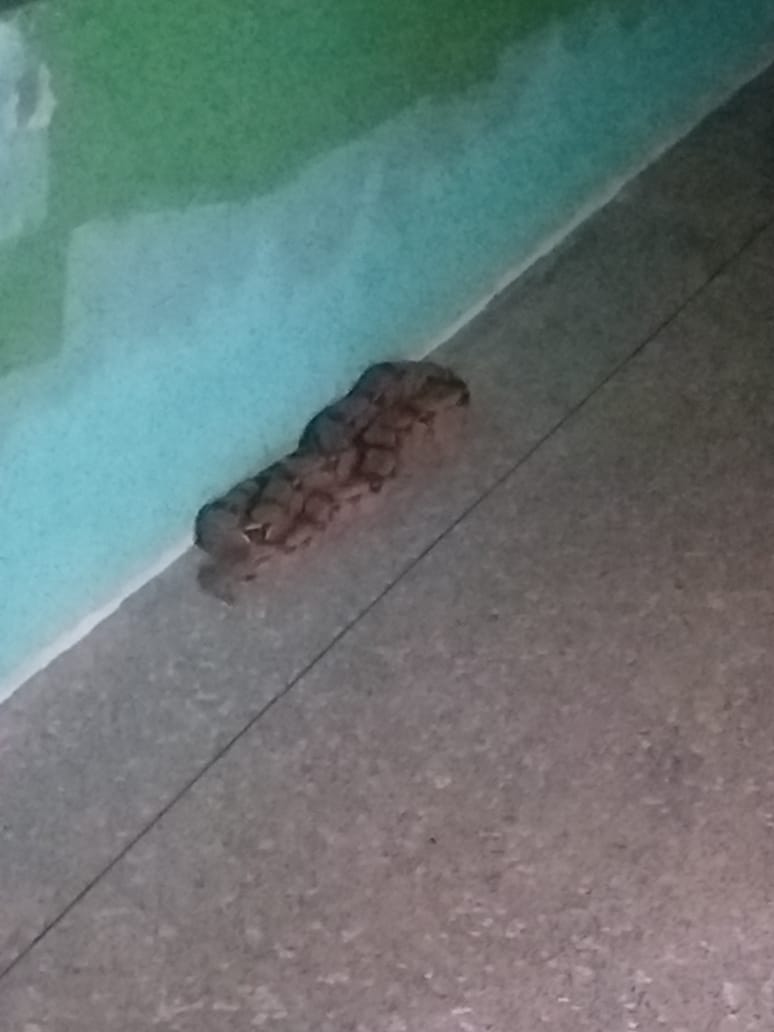 A guarnição foi até o endereço informado e a solicitante esperava cuidando para que o animal não se escondesse se saísse do corredor da escola infantil no bairro Bom Pastor.