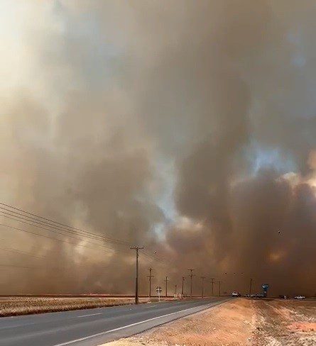 Um incêndio de grandes proporções alimentado uma área de palhada próximo ao anel viário de Sorriso, que liga a BR-163 à MT-242.