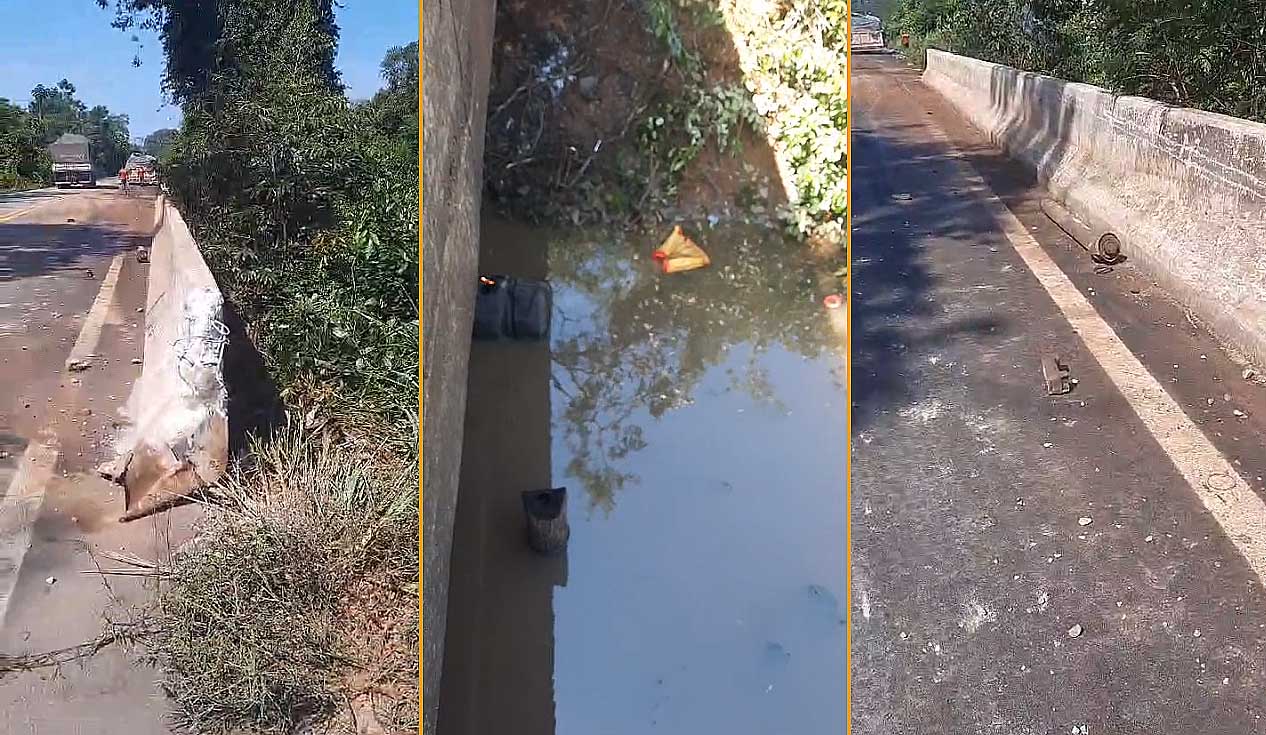 O motorista de um caminhão de uma distribuidora, acabou batendo com o veículo de carga na cabeceira da ponte, com o impacto, o eixo traseiro (diferencial), foi completamente arrancado. A princípio somente danos materiais foram registrados.