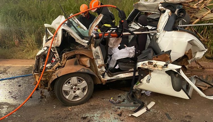 O casal estava com o cinto de segurança dentro do veículo de passeio. Com o impacto, o carro ficou prensado entre duas carretas e o marido e a mulher ficaram presos nas ferragens.