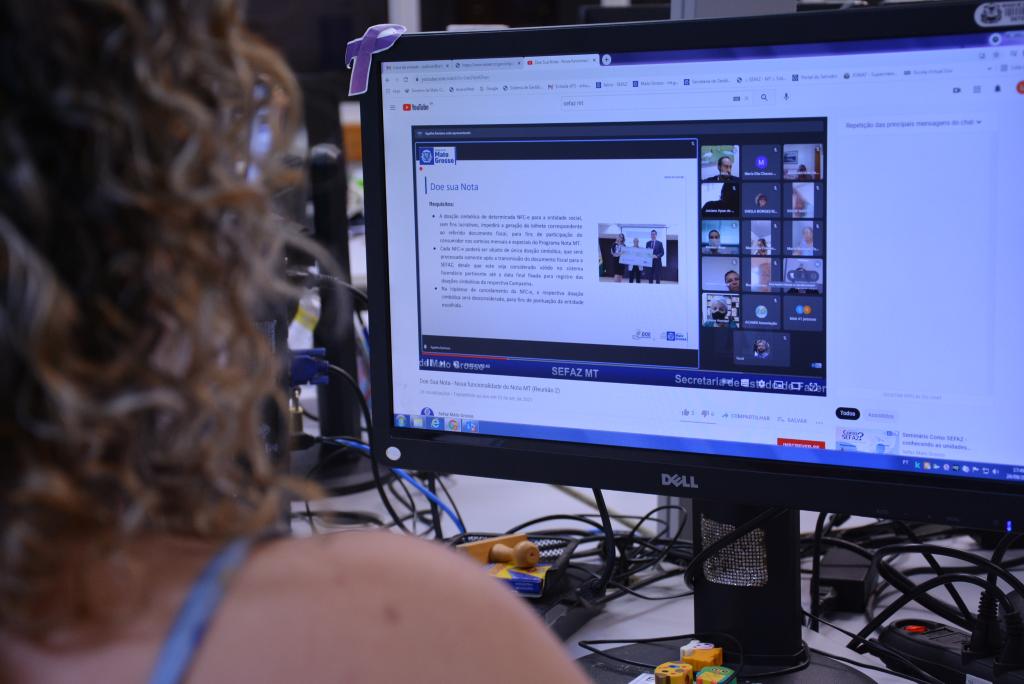 A Secretaria de Fazenda (Sefaz) promoveu nesta semana uma agenda de reuniões com as entidades sociais cadastradas no Programa Nota MT para apresentar as regras e procedimentos do Doe Sua Nota, nova funcionalidade que permite doar para as instituições as notas fiscais sem o CPF do consumidor. Foram realizadas duas agendas, nos dias 21 e 23 de setembro, transmitidas ao vivo pelo canal da Sefaz no Youtube e que contou com a participação de 120 entidades filantrópicas de todo o estado.