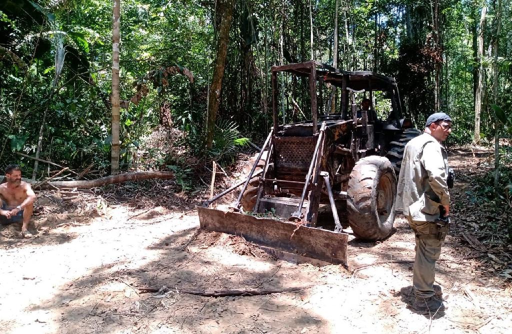 Foram removidos os dois caminhões, um trator e três motosserras utilizados na ilicitude. A remoção de máquinas ou a inutilização dos equipamentos e demais estruturas é uma forma de cessar o dano ambiental em curso e descapitalizar o infrator.