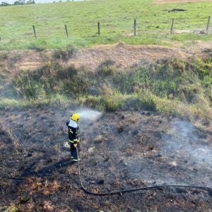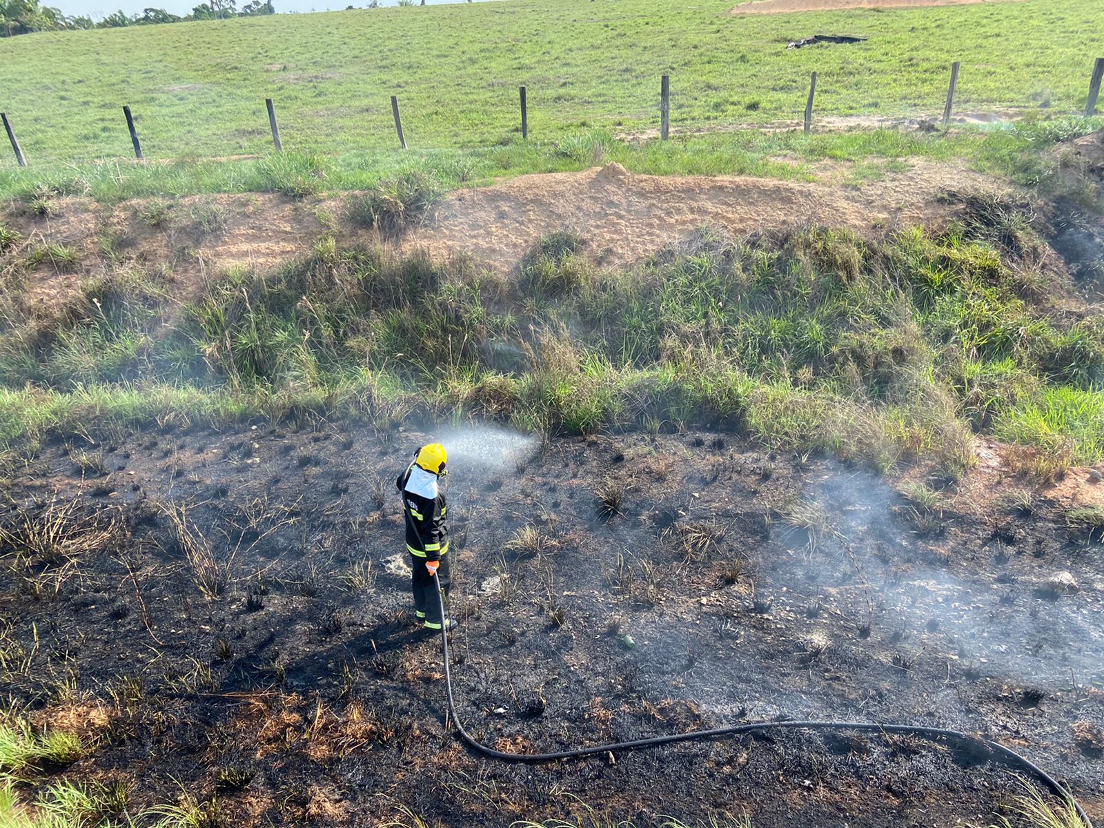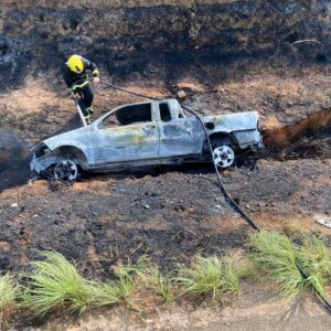Foi extinguido o fogo do automóvel e também na vegetação.