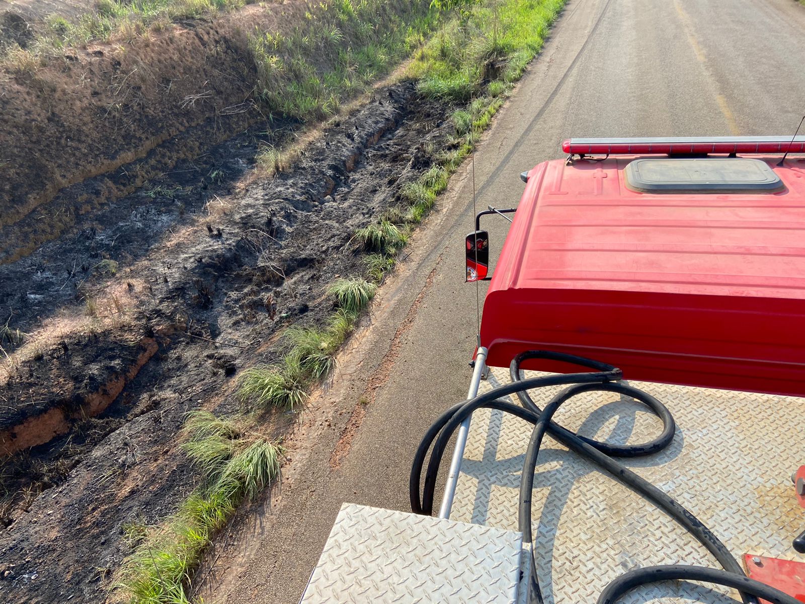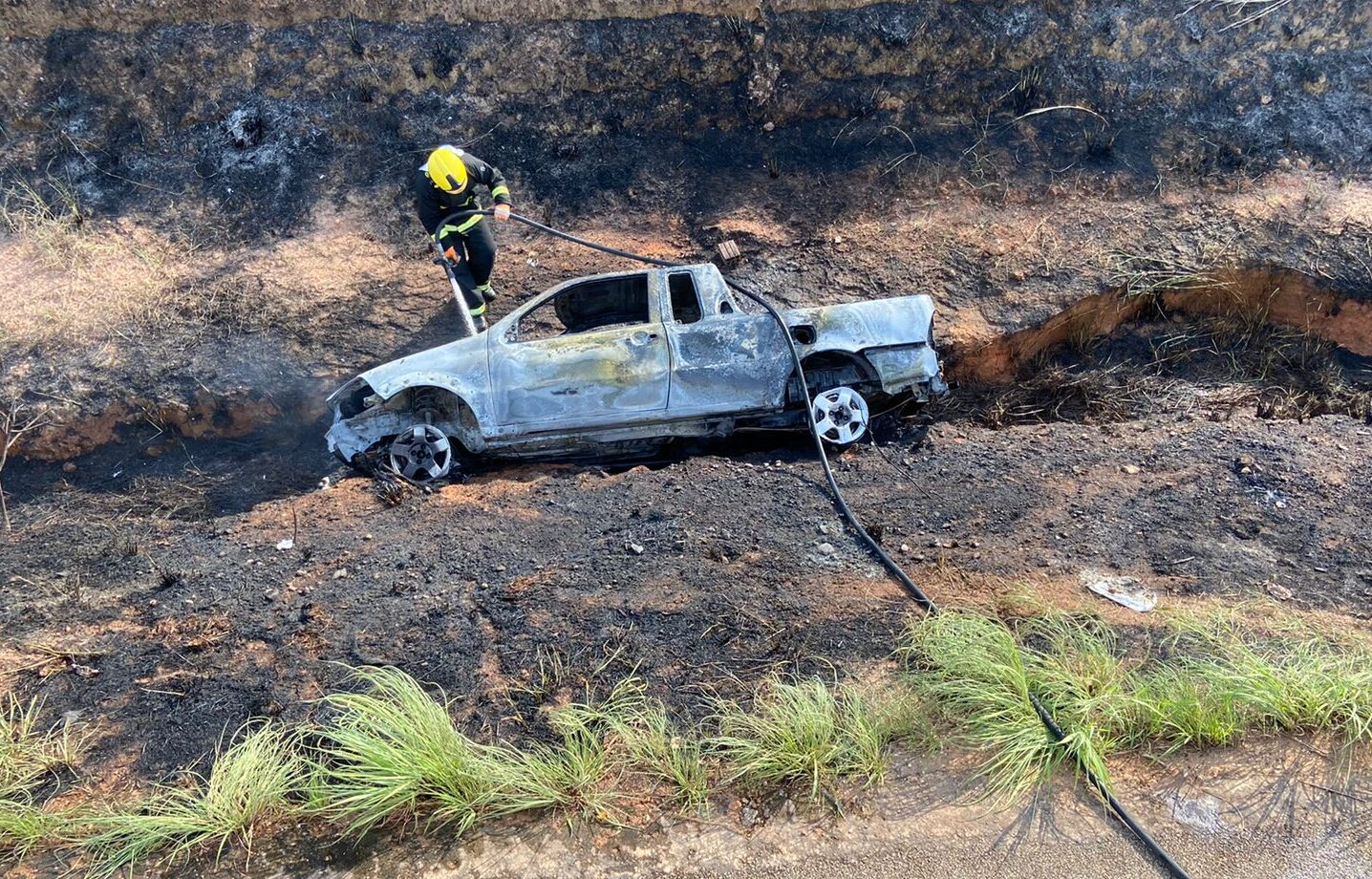 Inicialmente, a unidade foi acionada para atender a um capotamento, mas chegando no local encontrou o veículo, uma picape Strada, branca, ano 2012 com placas de Alta Floresta em chamas. O fogo também se alastrava pela vegetação.