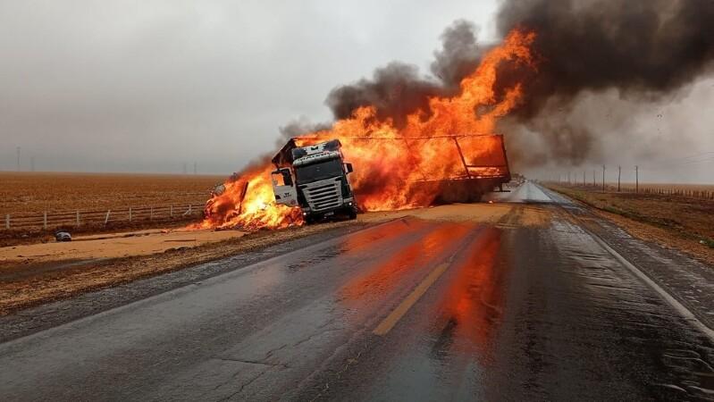 A equipe de resgate da Rota do Oeste foi acionada. Um motorista conseguiu deixar o veículo antes das chamas atingirem. O outro ainda não foi localizado