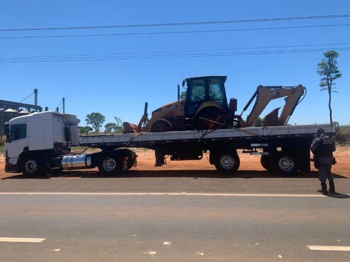 Uma retroescavadeira roubada em São Paulo foi recuperada nesta segunda-feira (20.10) por policiais militares do 15º Batalhão, com apoio da Polícia Militar de Goiás, na rodovia MT-100, entre Alto Taquari e Alto Araguaia, em Mato Grosso. Um homem foi preso em flagrante suspeito por receptação.