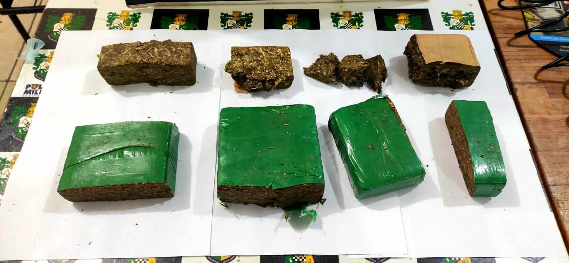 No interior do veículo foi localizada uma grande quantidade de entorpecente aparentando ser substância análoga a maconha.
