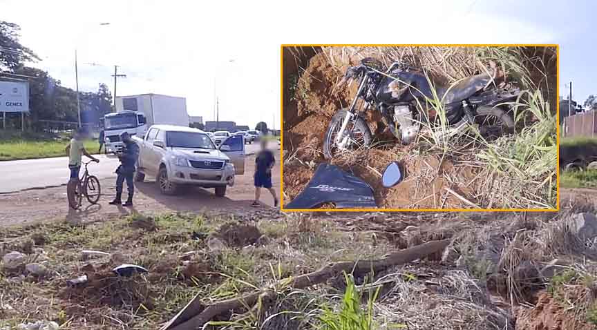 Com o impacto o menor foi arremessado para uma vala existente ao lado da rodovia.