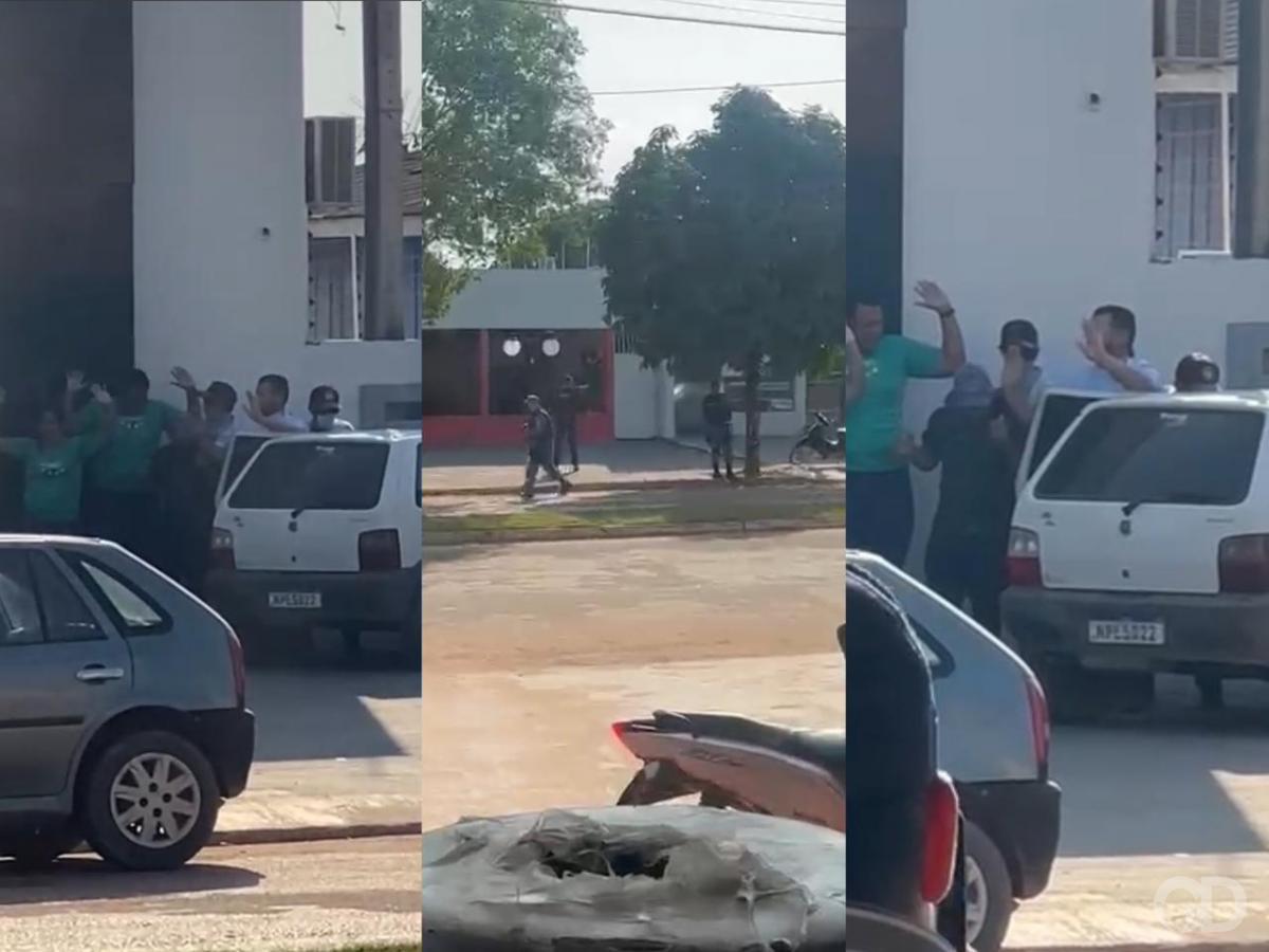 Polícia foi acionada, fez um cerco no local, mas os bandidos conseguiram fugir em uma Duster branca levando 3 pessoas. Elas já foram liberadas.