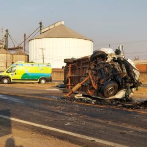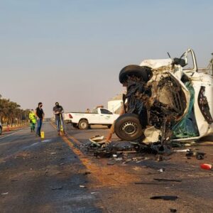 Com o impacto, a ambulância tombou na pista. Dados preliminares apontam que as vítimas encaminhadas são o motorista da ambulância, o médico e o acompanhante do paciente. Os mortos são a enfermeira e o paciente.
