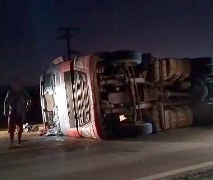 Um acidente envolvendo um veículo de carga que transportava milho foi registrado no início da noite de ontem, quarta-feira (06), próximo ao rio 4 pontes, na rodovia MT-208, em Carlinda.