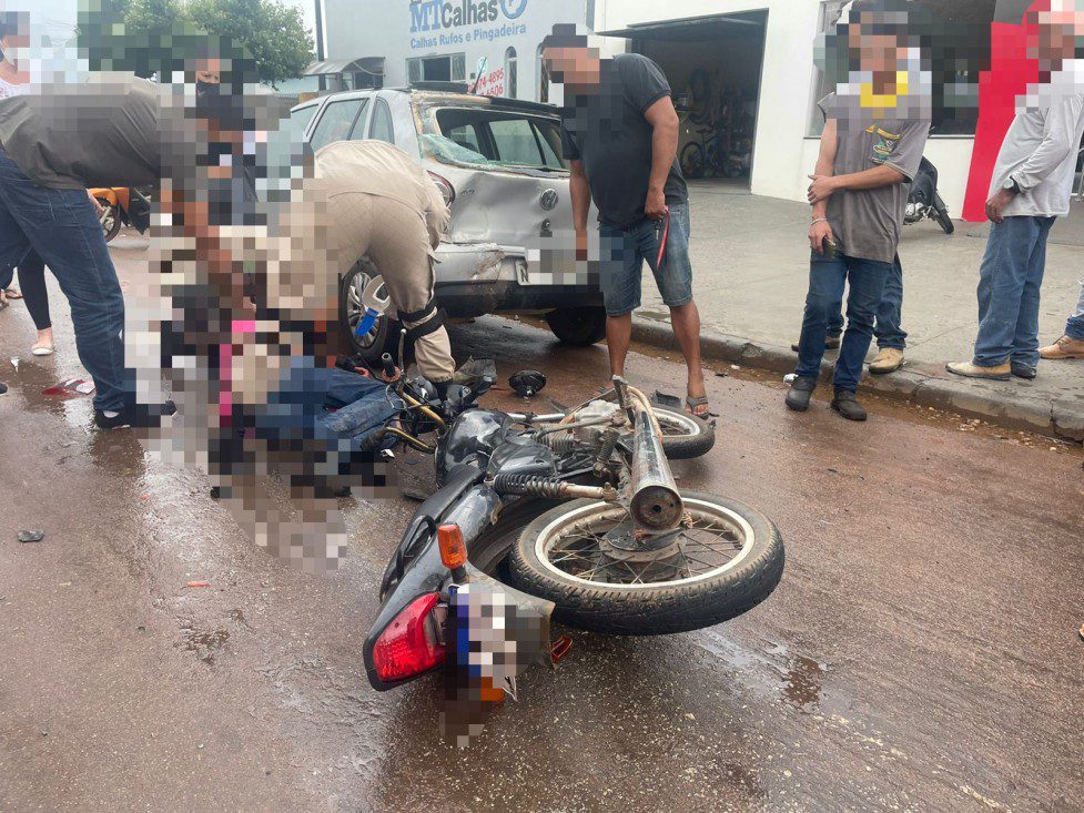 Ele e a passageira caíram e sofreram ferimentos, aparentemente graves. Foram atendidos pelo Corpo de Bombeiros e encaminhados, inconscientes, para o Hospital Regional.