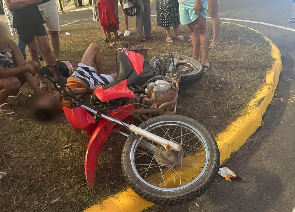 Um motociclista acabou sofrendo uma fratura exposta na perna, em um acidente ocorrido no centro de Colíder, na tarde deste domingo (13).