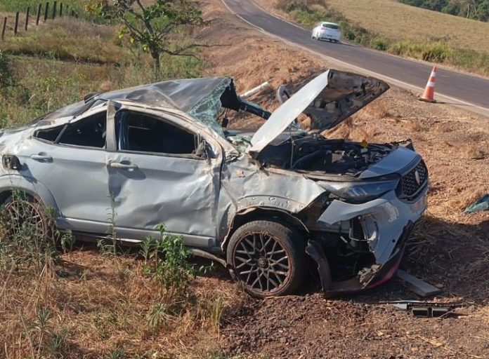 Um veículo Fiat Fastback, ano 2024, cinza, acabou capotando na tarde de ontem, domingo (10), no Km 237 da rodovia MT-320 em Carlinda.