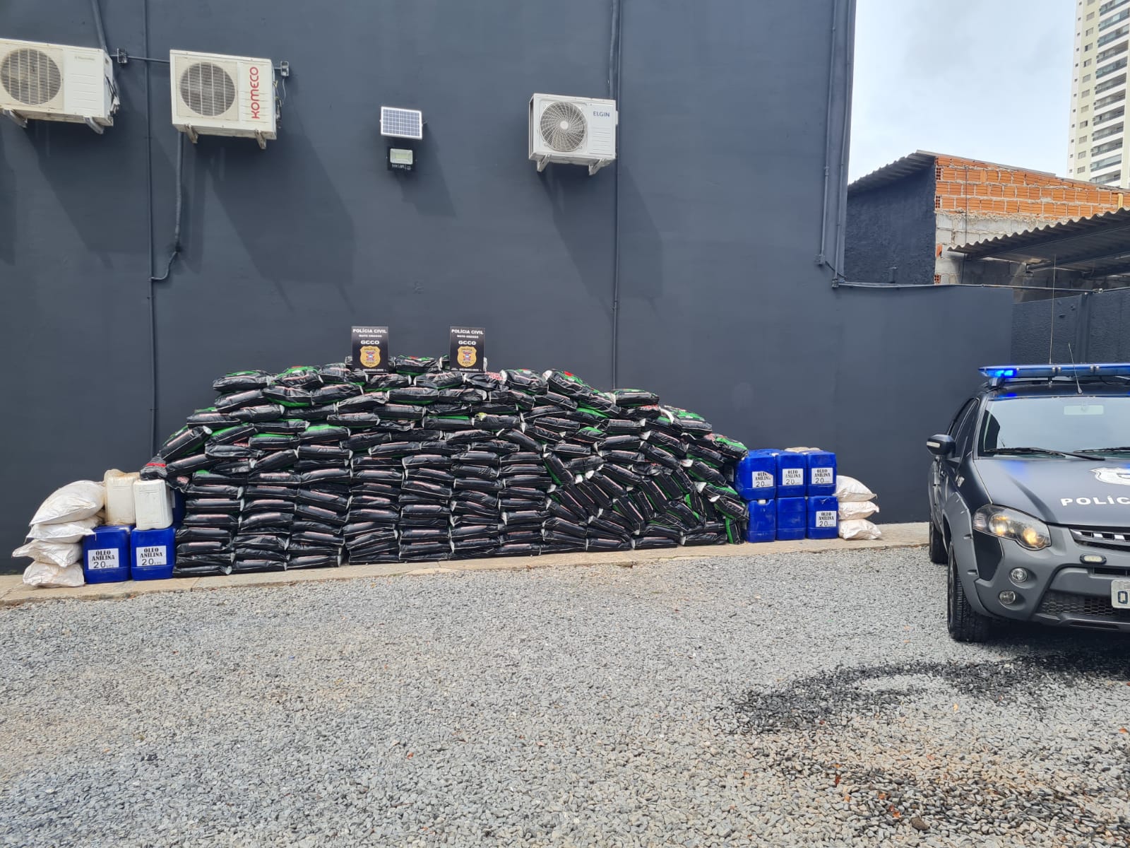 A GCCO recebeu informações de que a carga de defensivos havia chegado a Tangará da Serra, que estavam camuflados em embalagens de adubo foliar.