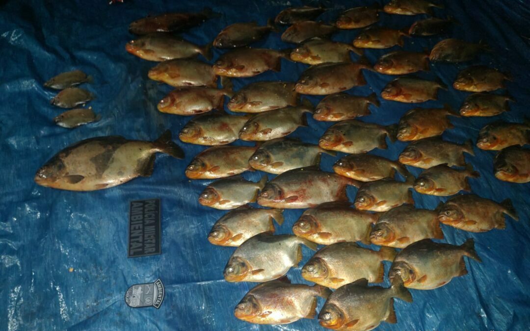 Todo o pescado foi exposto em uma lona para ser feita a contagem, onde ficou constatado 44 peças de pescados da espécime pacu, sendo 43 peças com tamanhos inferiores aos permitidos, pela legislação vigente, variando entre 24 cm, 37 cm, 23cm, 29cm, sendo o permitido por lei 45 cm, 03 peças de pescados da espécime pacu-peva medindo 17cm, 18cm, 19cm, sendo o permitido o tamanho de 20 cm, 01 peça de pescado da espécime Piau-Açu, totalizando 48 peças de pescados diversos.