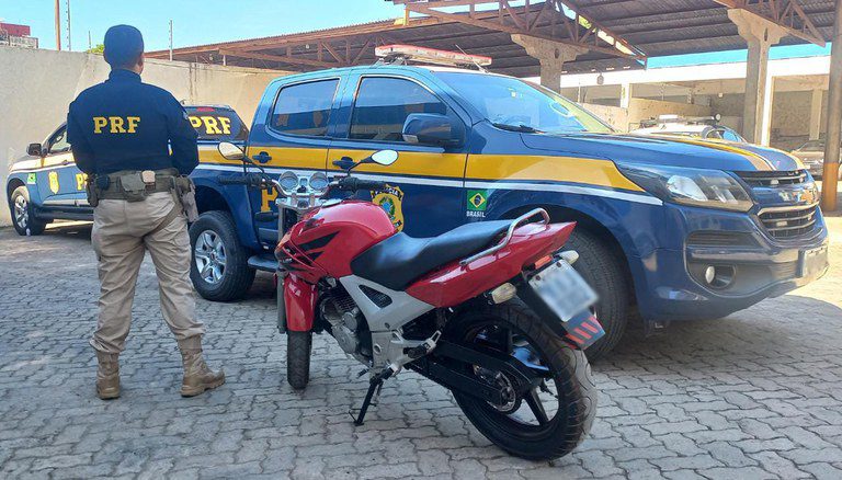 Nesta sexta (26), durante fiscalização no município de Cuiabá/MT, equipe PRF realizou a abordagem de uma motocicleta roubada.
