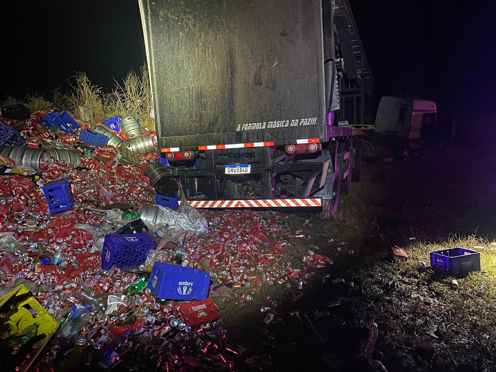 Diante da situação a PM foi de imediato à cabine do veículo para verificar se haviam vítimas e encontrou o motorista de pé, ao lado da cabine do caminhão, consciente e sem graves ferimentos.