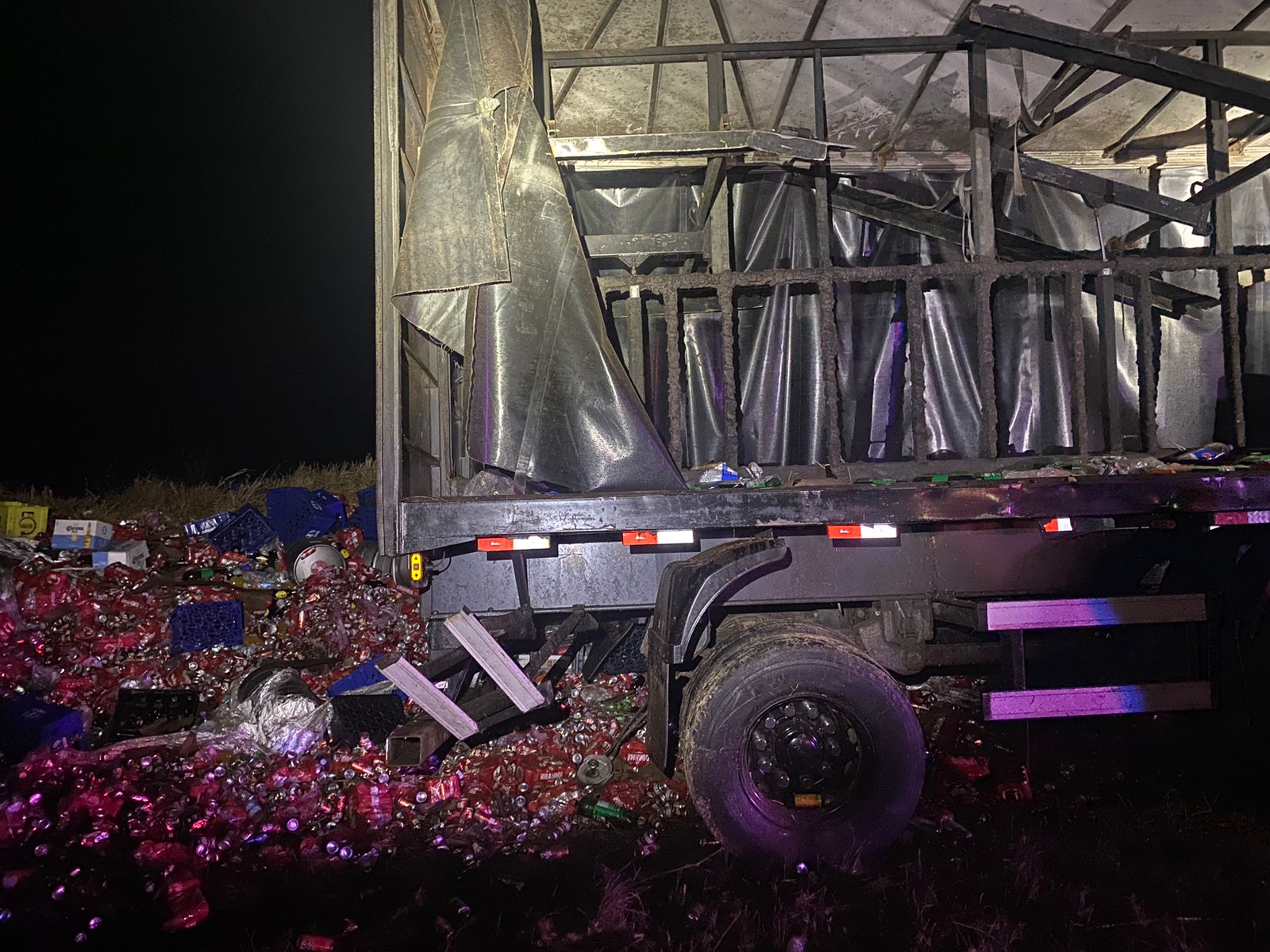 Conforme ocorrência registrada pela Polícia Militar, durante patrulhamento pela rodovia, a equipe verificou um caminhão branco efetuando ultrapassagem na rodovia MT-320, em determinado momento o motorista de 42 anos perdeu o controle do veículo carregado de bebidas.