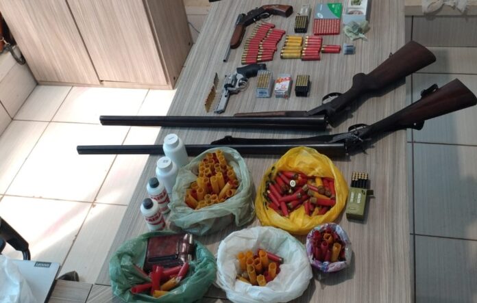 Durante o cumprimento das buscas, as equipes policiais apreenderam quatro armas de fogo e uma pequena porção de maconha.