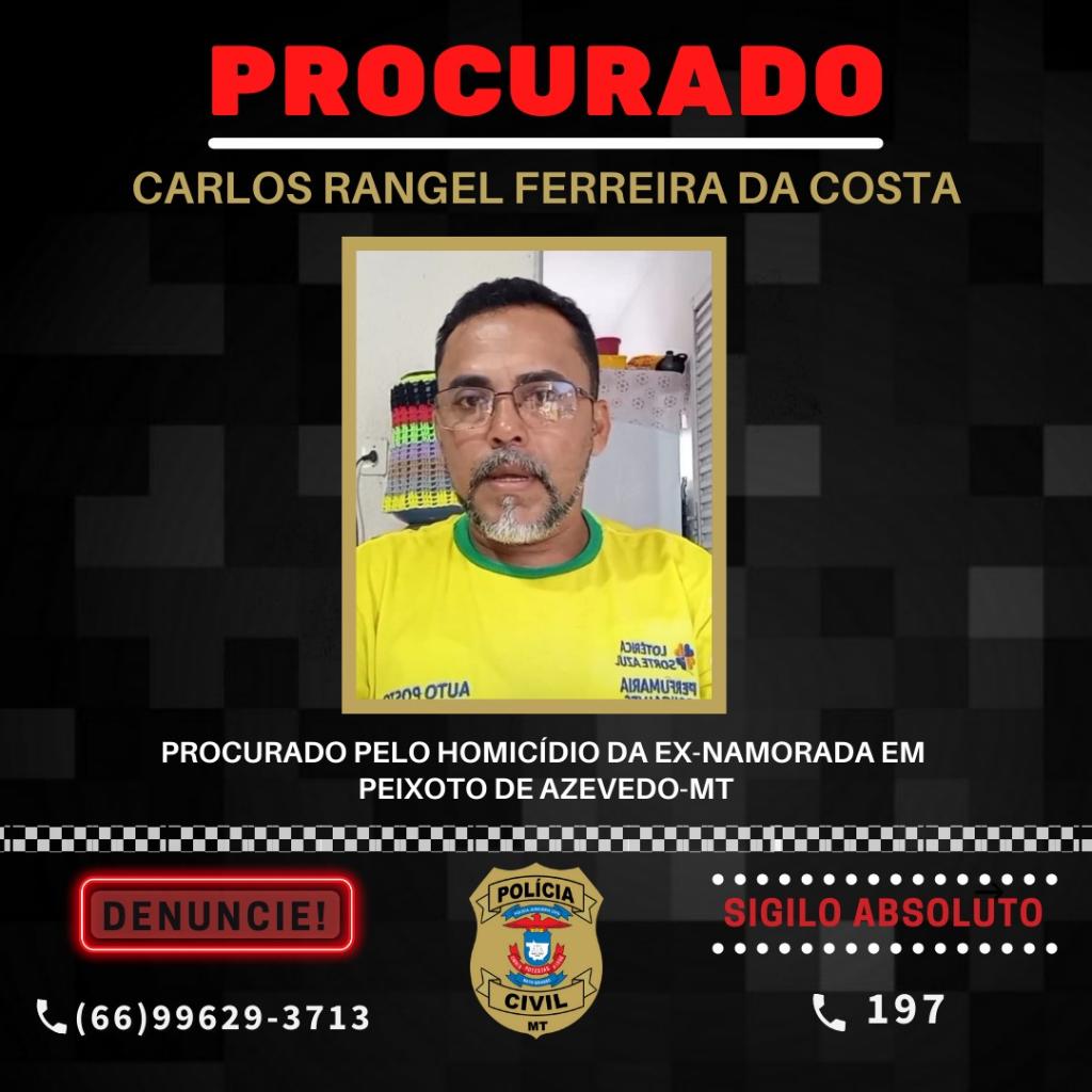 A Delegacia de Peixoto de Azevedo indiciou o autor do homicídio qualificado de Janaína Ribeiro do Nascimento, 31 anos, e representou pela prisão de Carlos Rangel Ferreira da Costa, de 48 anos, foragido após assassinar a ex-namorada.