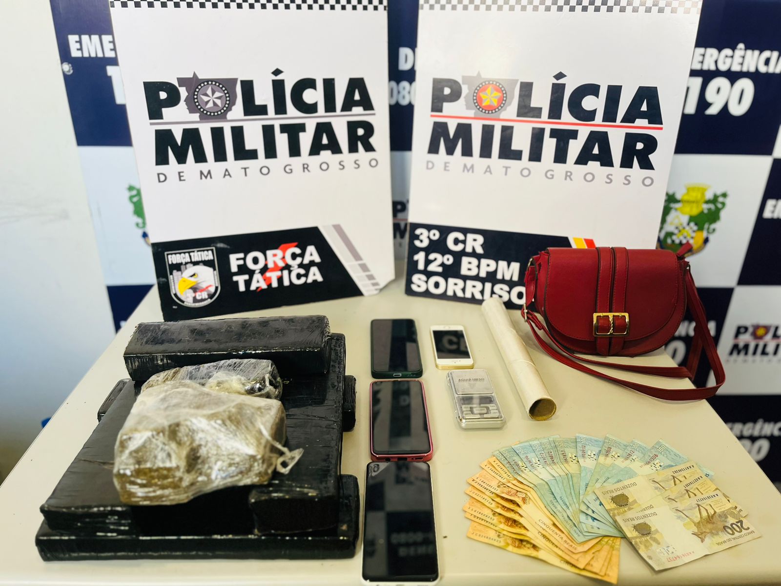 Os militares entraram na quitinete e encontraram outras duas suspeitas, sendo uma adolescente. Em buscas na residência, foram encontrados mais cinco tabletes de maconha e outras porções da mesma droga, e a quantia de R$ 2,2 mil em dinheiro. Todas as suspeitas foram conduzidas em flagrante para a Delegacia de Sorriso.