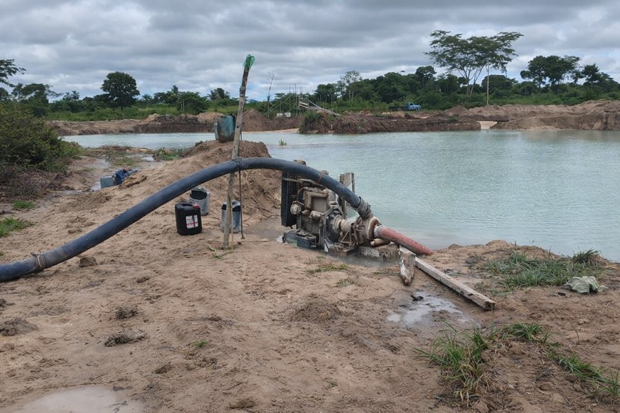 Ao chegarem na região, os militares flagraram um garimpo ilegal em pleno funcionamento, onde dois motores estacionários estavam acoplados em uma bomba de sucção. Além disso, os policiais também encontraram uma escavadeira, uma calha concentradora de minérios e dois contêineres de combustível.